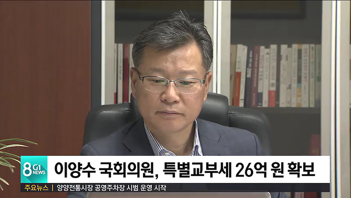 국민의힘 이양수 국회의원이 지역 현안사업과 관련해, 행정안전부 특별교부세 26억원을 확보했습니다.