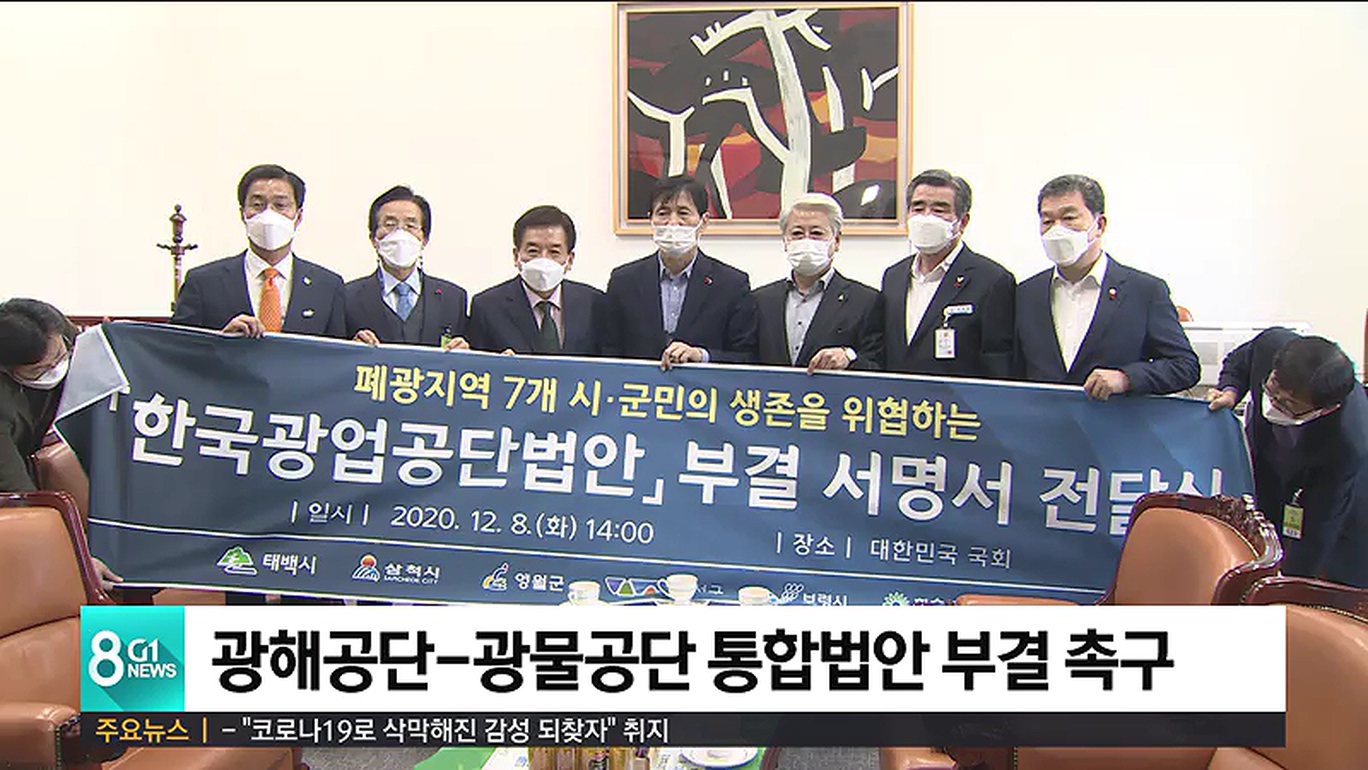 폐광지역 시장군수들이 한국광해관리공단과 한국광물자원공단의 통합을 골자로 한 '한국광업공단법안'과 관련해 오늘 국회를 찾아 입장문을 내고 법안 부결을 촉구했습니다.
