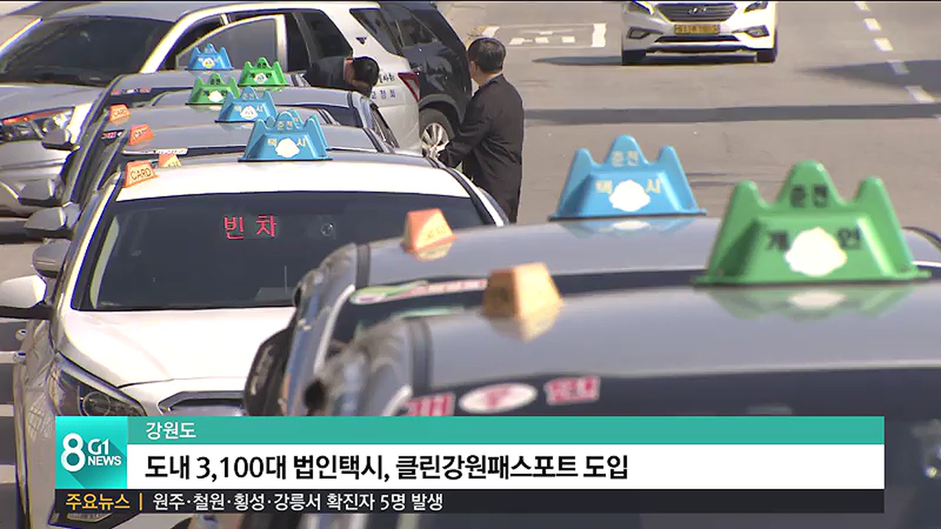 강원도는 다음 주까지 도내 18개 시·군 법인택시 3,100여대에 '클린강원패스포트'를 설치해 운영에 들어간다고 밝혔습니다.