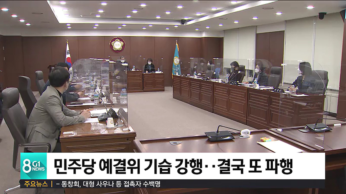 원주시의회 예결위가 잇따라 파행을 거듭하는 가운데, 오늘 민주당 소속 의원들이 회의를 기습 강행했지만, 결국 또다시 파행됐습니다.