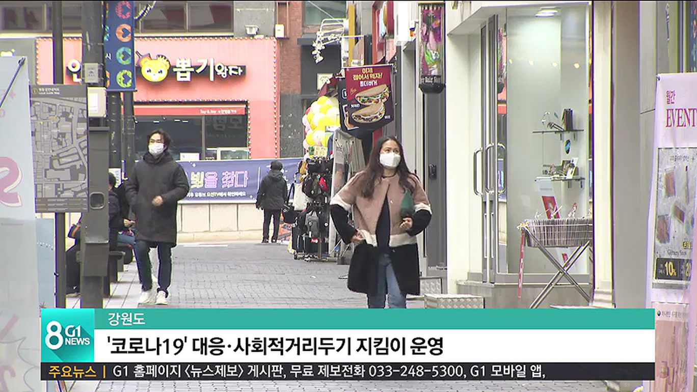 강원도는 도내 18개 시·군과 함께 사회적거리두기강화에 따른 시설별 방역 수칙과 연말연시 모임금지, 마스크 착용, 다중이용시설내 음식 섭취 금지 등을 집중 홍보합니다.