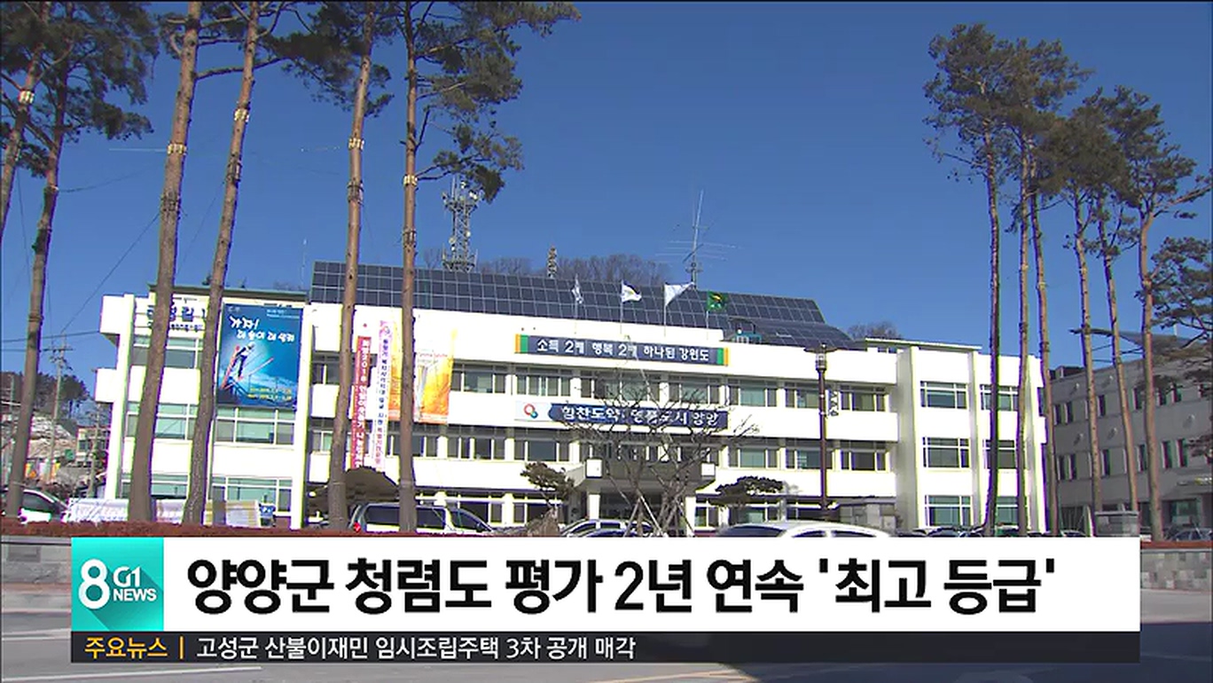 양양군은 국민권익위원회가 발표한 '2020년 공공기관 청렴도' 평가에서 2년 연속 '최고 등급'을 받았다고 밝혔습니다.