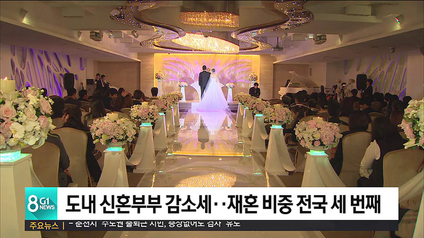 통계청이 발표한 자료에 따르면, 지난해 도내 신혼부부는 3만 4천 9백여 가구로, 전년 대비 758쌍이 줄었습니다.