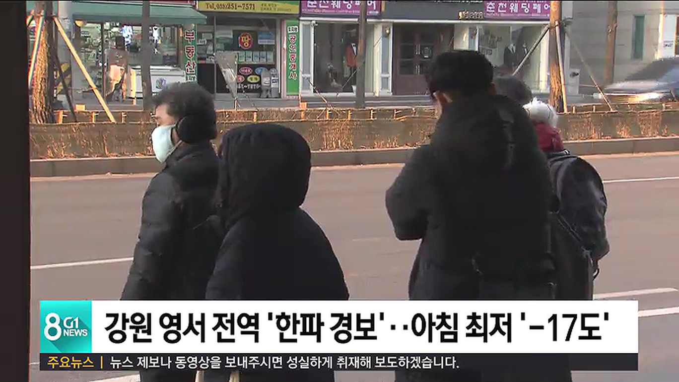 강원 영서 전역 '한파 경보'..아침 최저 '-17도'