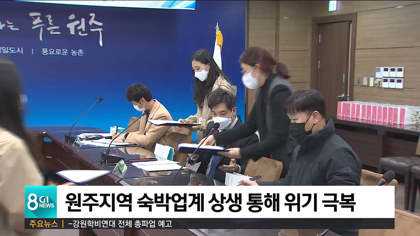 원주지역 호텔과 리조트 등 숙박업소 6곳은 오늘(15일) 원주시청에서 업무 협약을 맺고 상생을 약속했습니다.