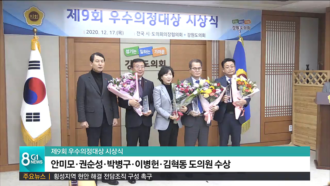 강원도의회는 제9회 우수의정대상 시상식을 열고, 5개 상임위원회 별 우수 의원을 시상했습니다.