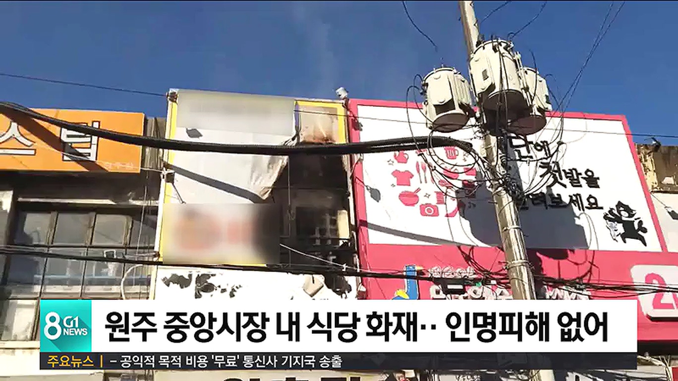 원주 중앙시장 식당 화재..14분만에 진화