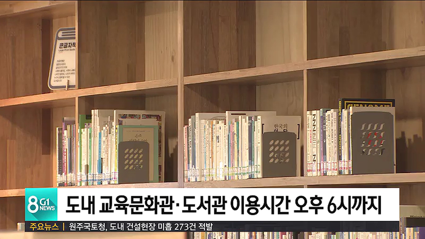 도내 교육문화관 5곳과 도서관 17곳의 이용시간이 변경됩니다.