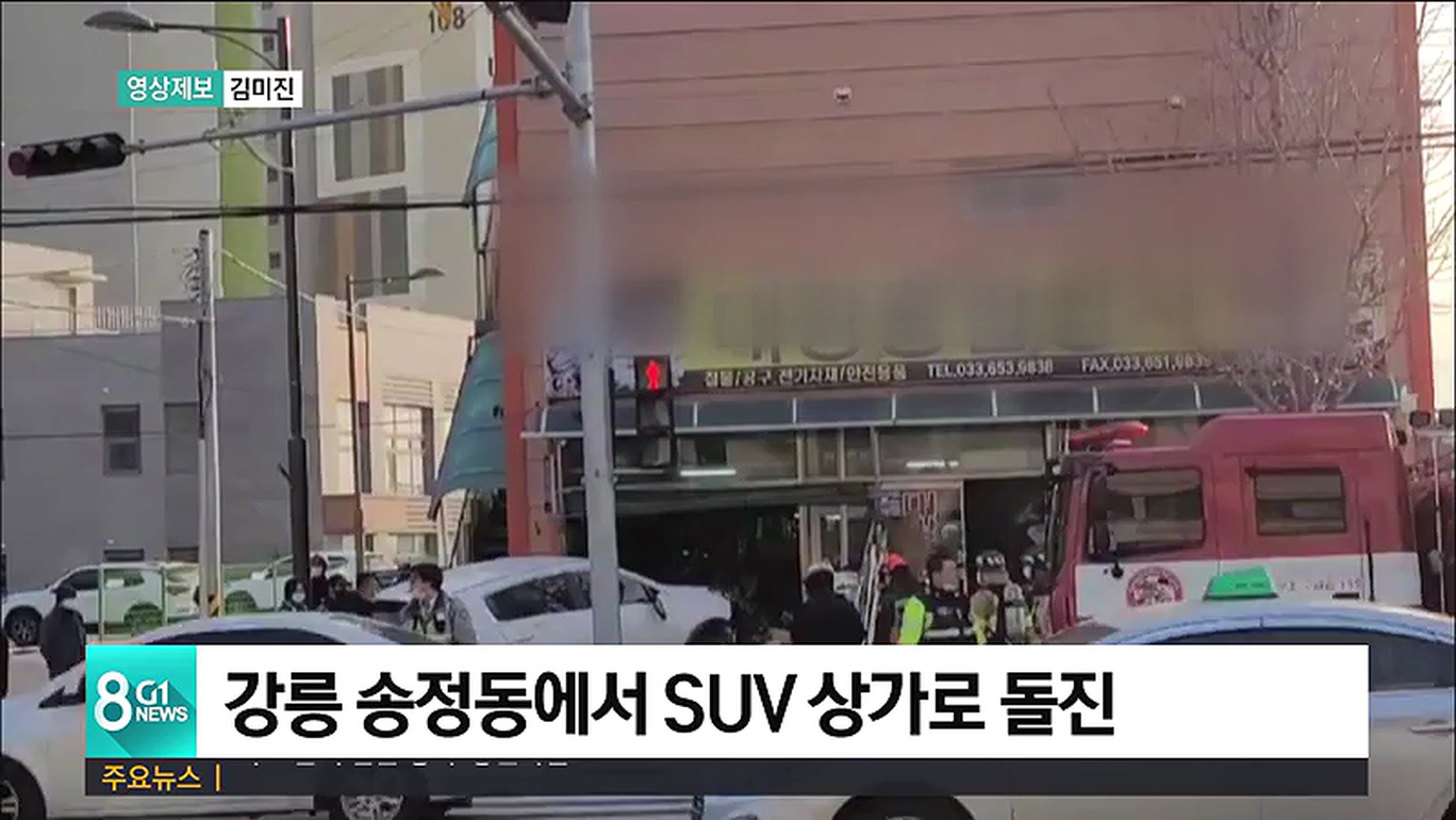 오늘 오후 3시 10분쯤 강릉시 송정동에서 SUV 차량이 상가로 돌진하는 사고가 났습니다.