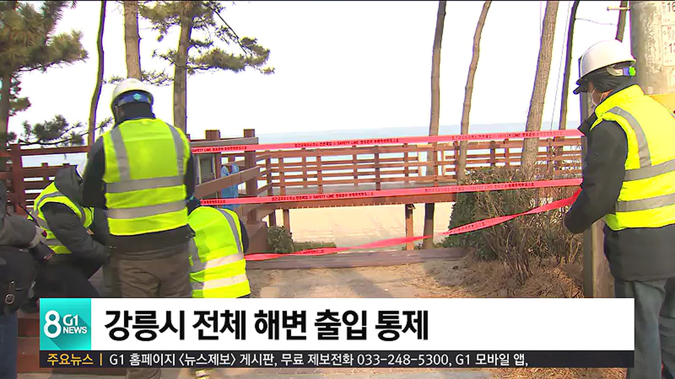 강릉시는 연말연시 관광객이 몰릴 것에 대비해 당초 경포와 정동진 등 주요 해변 8곳에 대해서만 통제하려던 계획을 바꿔 옥계에서 주문진까지 45km 전체해변을 봉쇄하기로 했습니다.