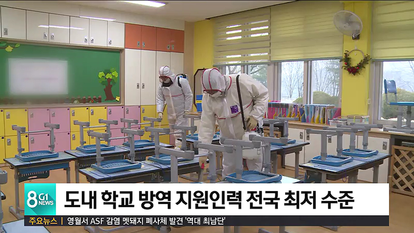 도내 일선 학교의 방역 지원 인력이 전국 평균수준을 밑도는 것으로 나타났습니다.