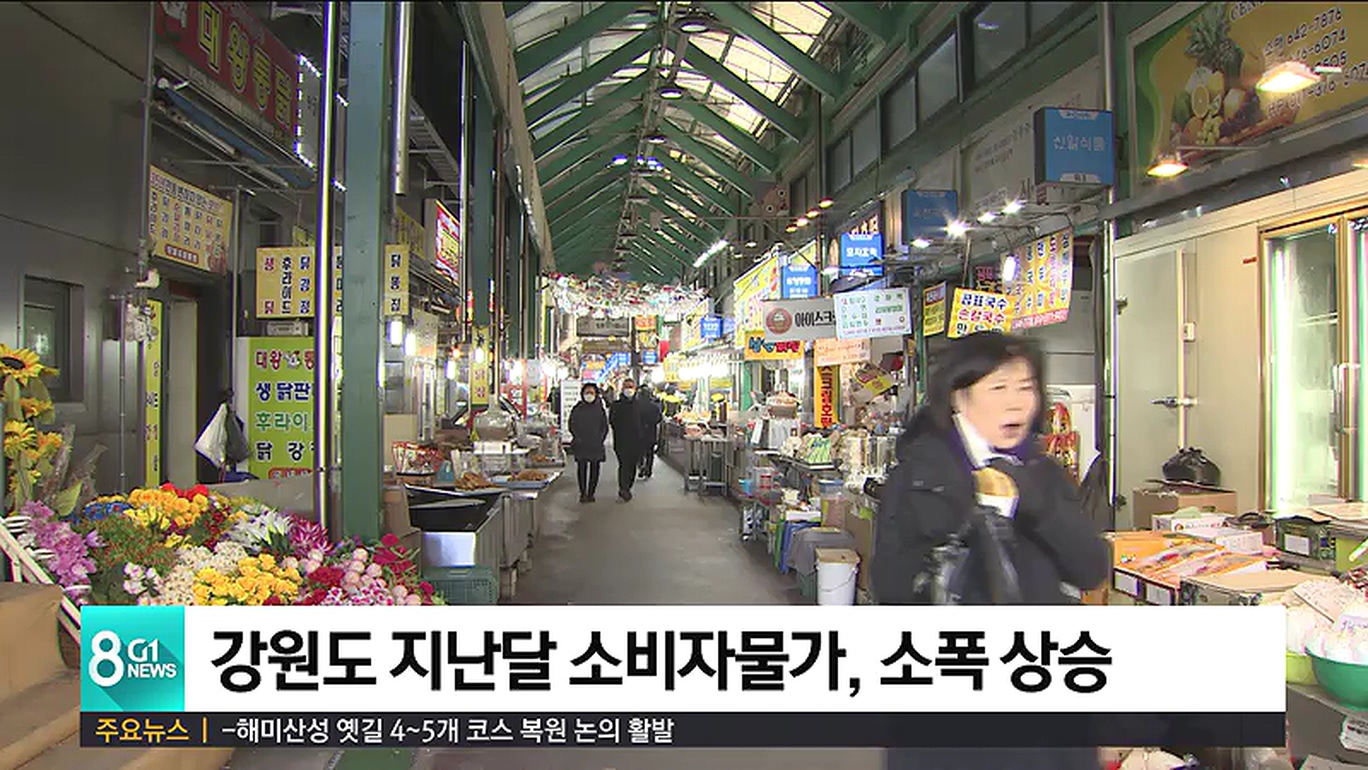 지난달 강원도 소비자물가지수가 한 달 전보다 소폭 오른 것으로 집계됐습니다.