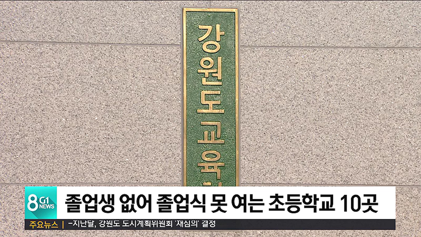 강원도 교육청에 따르면 지난해 졸업생이 단 1명도 없는 초등학교가 전년 보다 9곳이 늘어난 10곳으로 나타나는 등 졸업생 3명 이하인 초등학교는 모두 65곳에 달하고 있습니다.