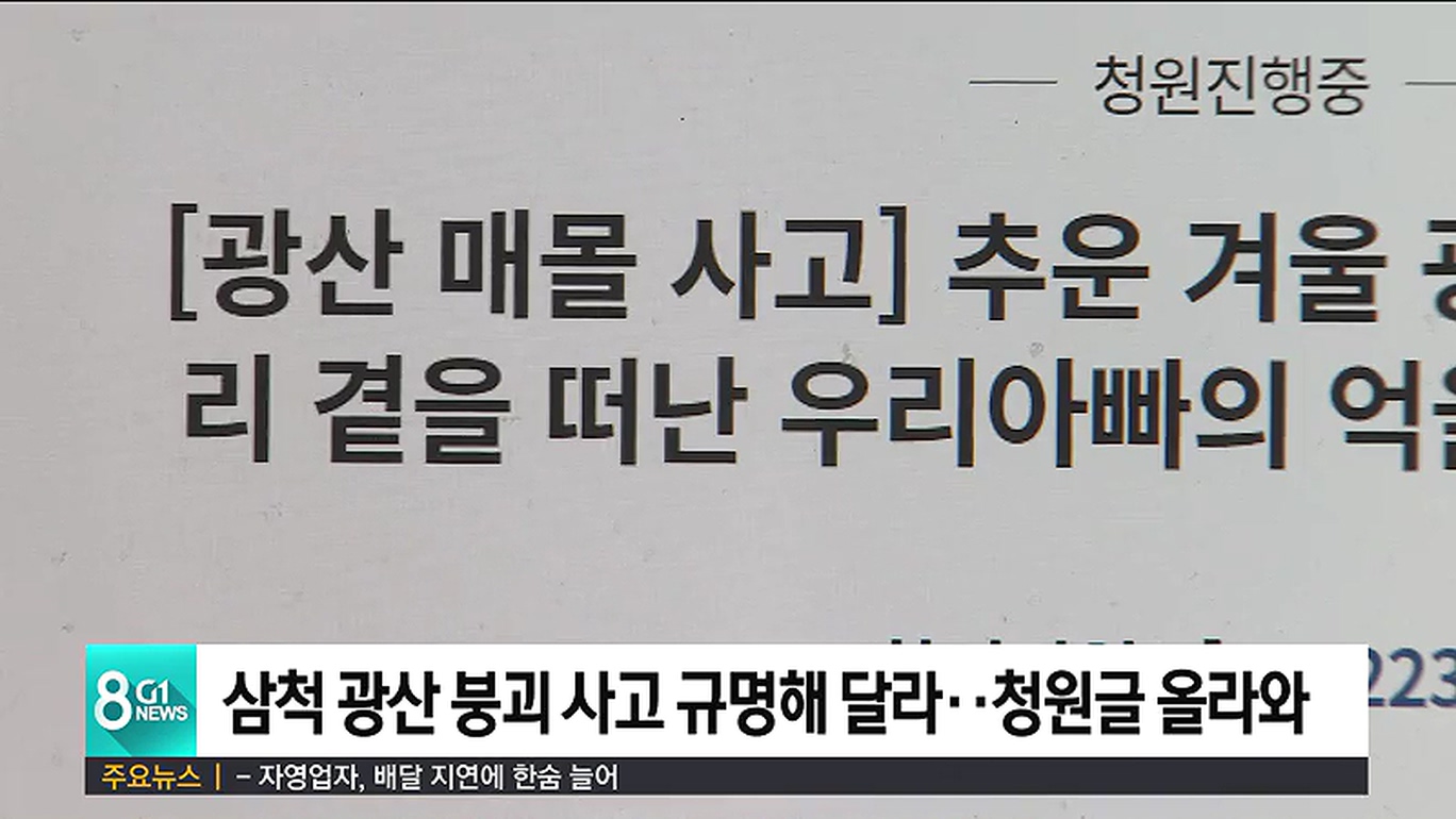 지난달 삼척시 근덕면에서 발생한 광산 붕괴사고와 관련해, 사고 원인을 규명해달라는 유가족의 청와대 청원이 올라왔습니다.