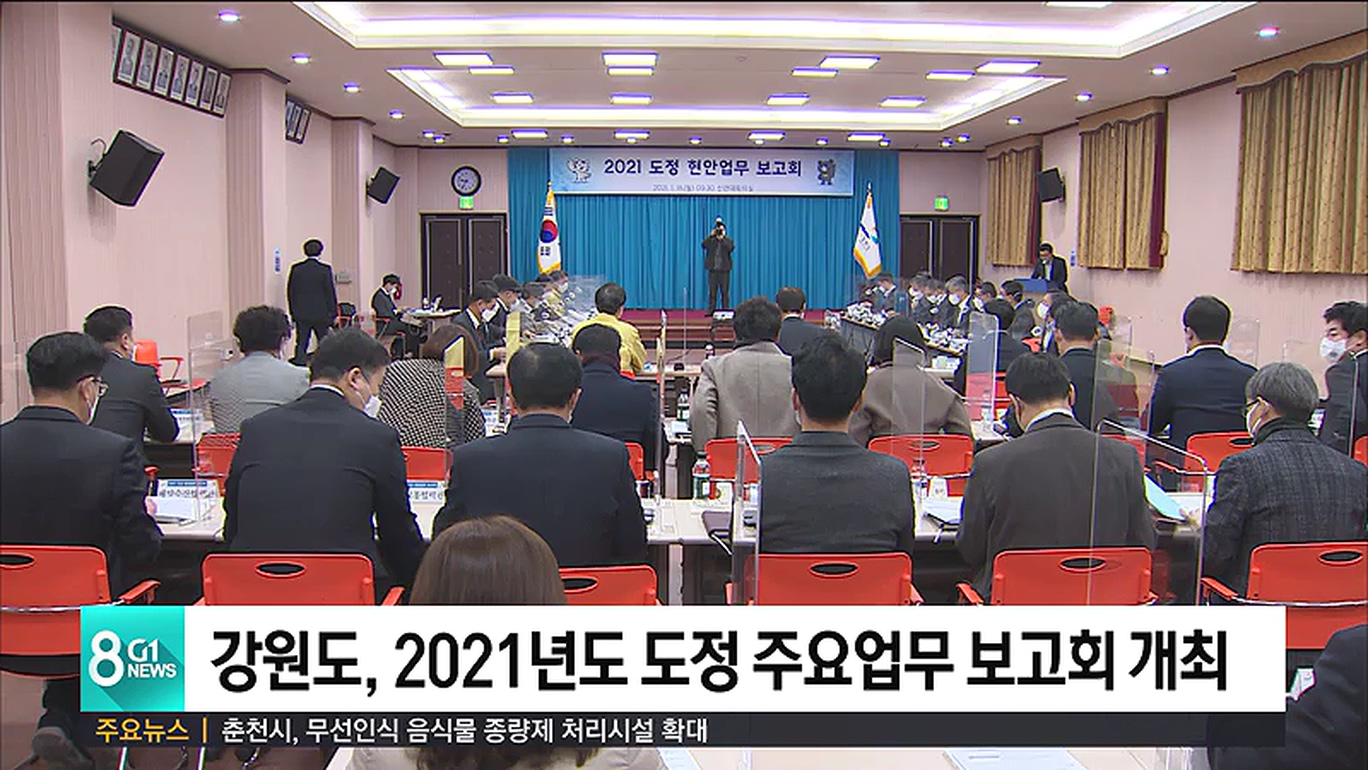 올 한해 도정 현안과 발전 방안을 논의하기 위한 '2021년도 도정 현안 업무 보고회'가 강원도청 대회의실에서 열렸습니다.
