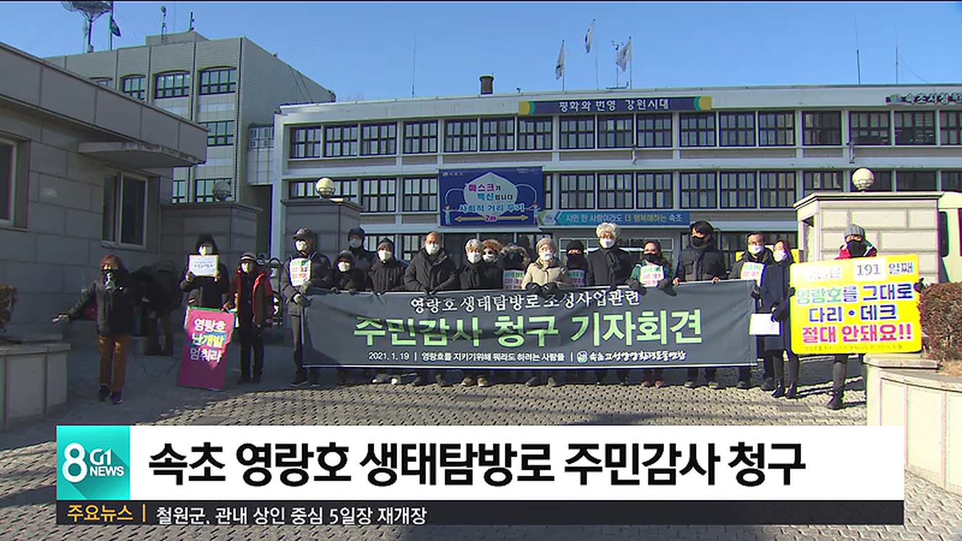속초·고성·양양 환경운동연합과 '영랑호를 지키기 위해 뭐라도 하려는 사람들'은 오늘(19일) 속초시청 앞에서 기자회견을 열고 사업 절차 상에 위법 행위가 발견돼 강원도에 주민감사를 청구한다고 밝혔습니다.