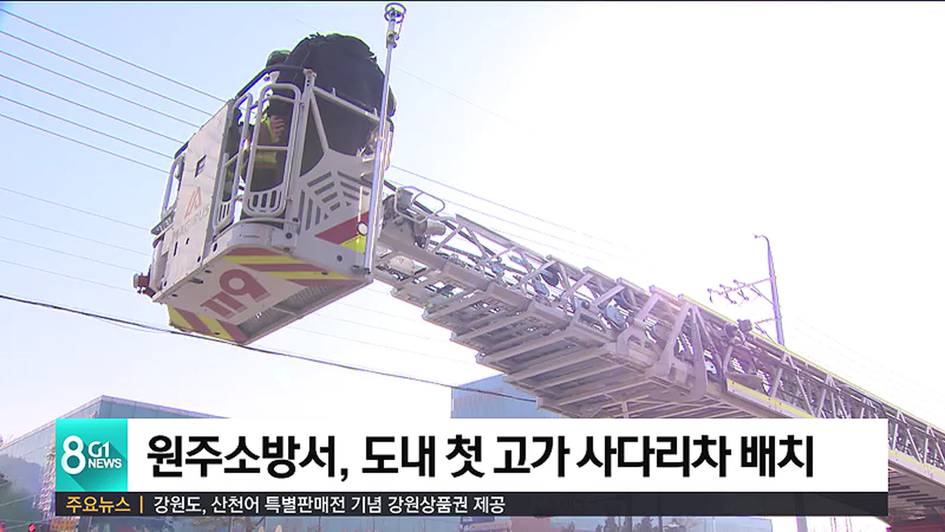 원주소방서는 고층건축물 재난 대응력 향상을 위해 도내 최초로 고가 사다리차를 배치했습니다.