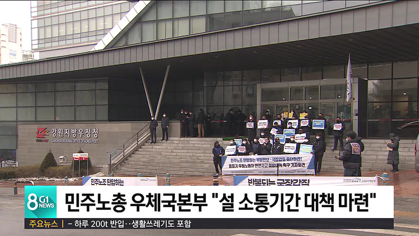 민주노총 공공운수노조 전국민주우체국본부 강원지역본부는가 설 연휴 기간 우정노동자의 안전 보장 대책을 마련하라고 촉구했습니다.