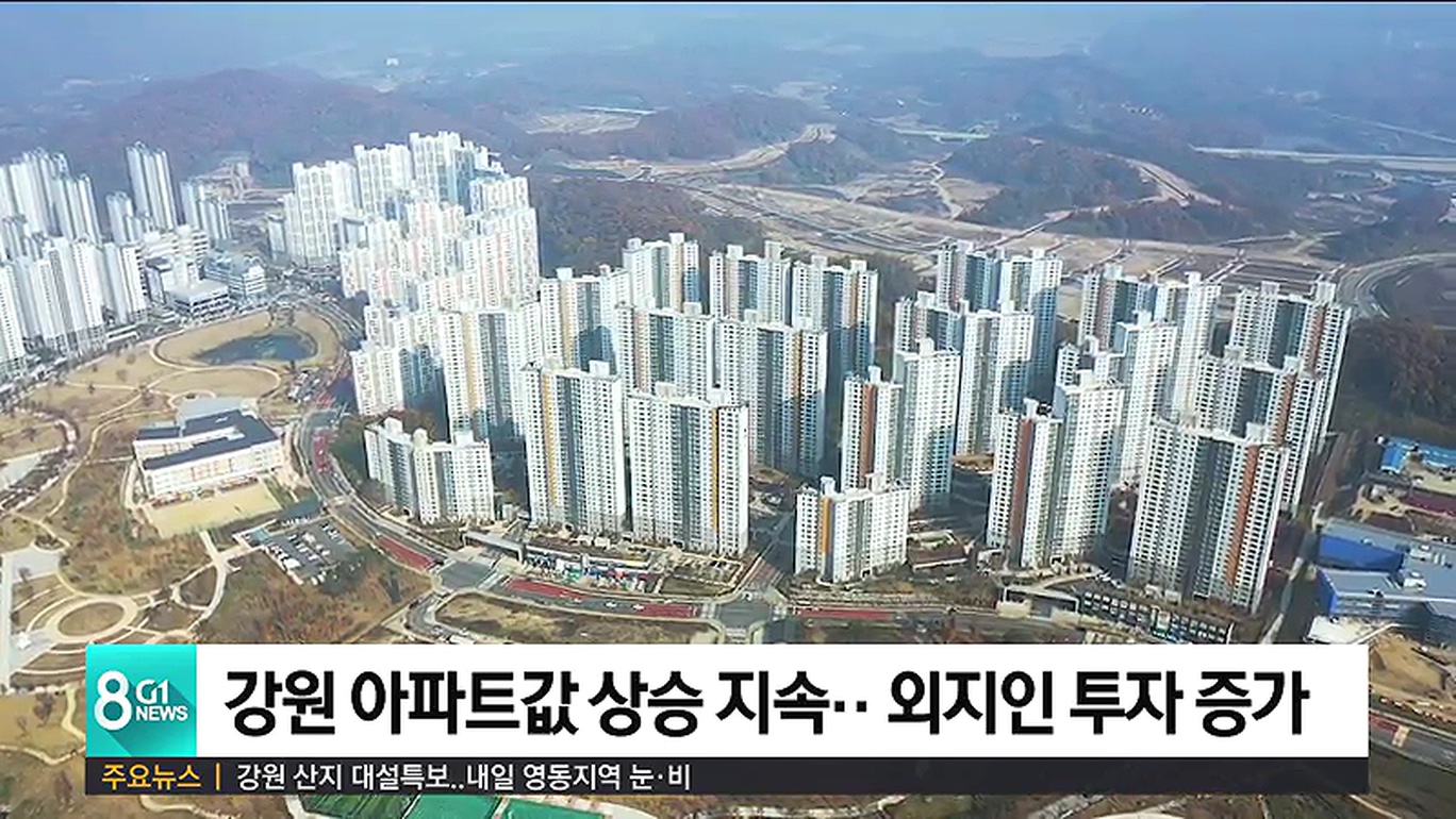 지역별 상승률은 원주가 0.46%로 가장 높았고, 속초 0.2%, 춘천과 강릉 0.19% 순입니다.