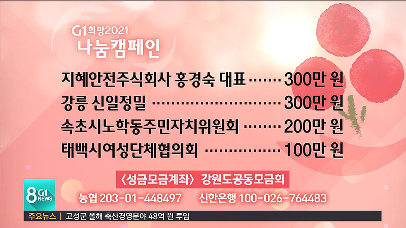 태백시여성단체협의회 100만 원