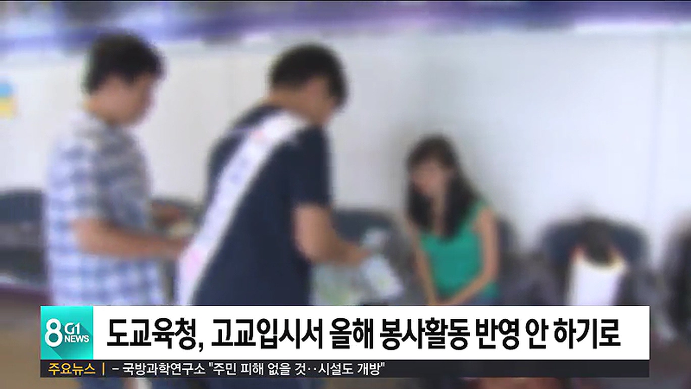 강원도교육청은 앞으로 고교입시에서 올해 봉사활동 점수를 반영하지 않고, 중학생 전원 만점을 주는 방식으로 운영하겠다고 밝혔습니다.