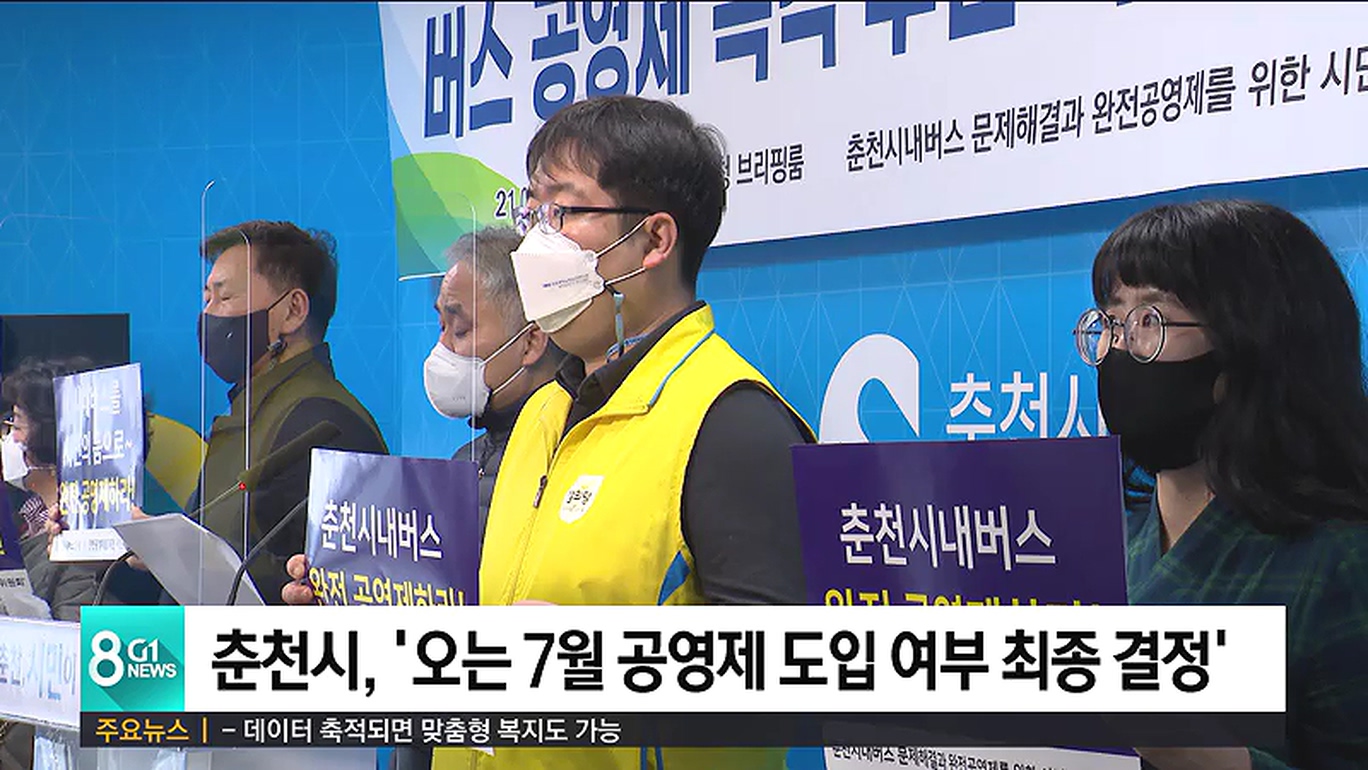 춘천지역 20개 시민단체로 구성된 '춘천 시내버스 문제해결과 완전공영제를 위한 시민대책위원회'는 오늘 춘천시청에서 기자회견을 열고,