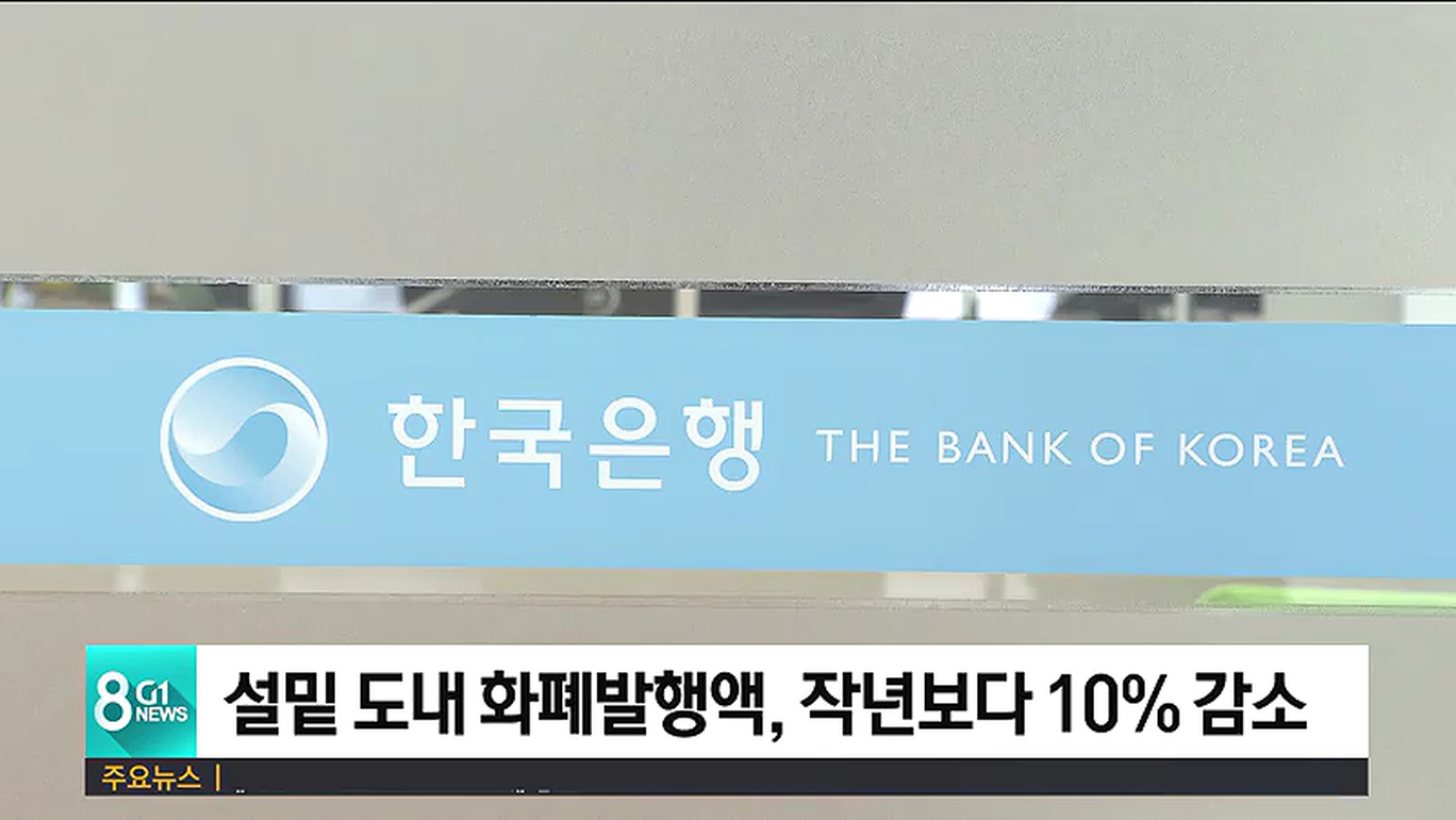 한국은행 강원본부에 따르면, 지난달 28일부터 도내에서 발행한 화폐는 1,320억 원으로, 지난해 발행액보다 148억 원 감소했습니다.