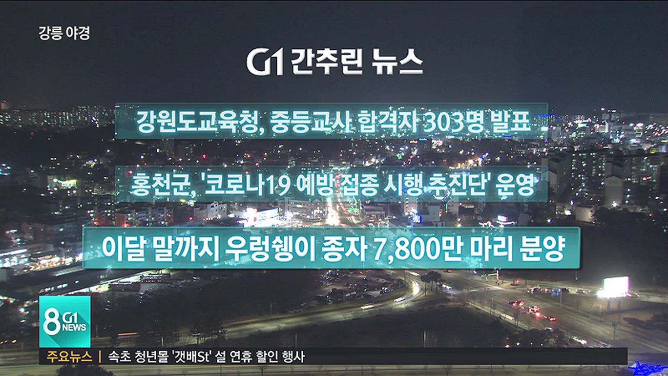 홍천군은 군민 7만명 중 소아와 청소년, 임신부를 제외한 6만 천여 명에 대한 코로나19 백신 예방 접종 계획을 세우고, 원활한 접종을 위한 시행 추진단을 운영한다고 밝혔습니다.