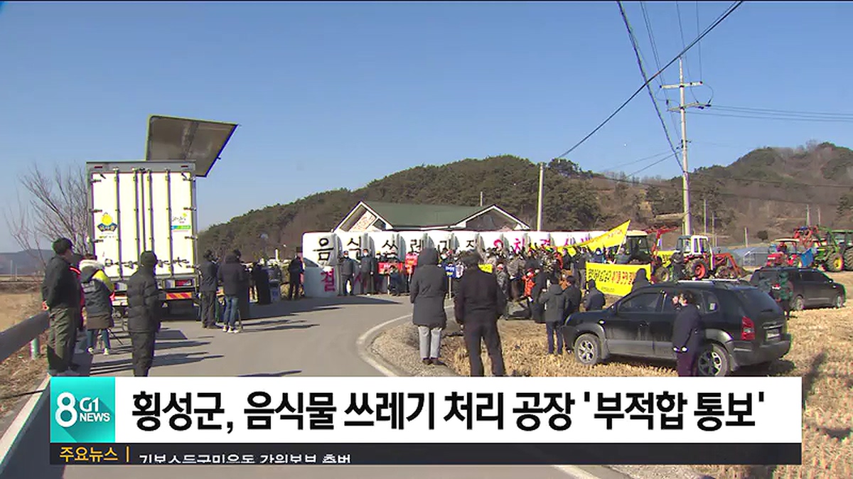 횡성군 우천면에 대규모 음식물쓰레기 처리 공장 설립이 추진돼 주민들이 반발하고 있다는 최근 G1 뉴스 보도와 관련해, 횡성군도 해당 시설물이 부적합하다고 판단했습니다.