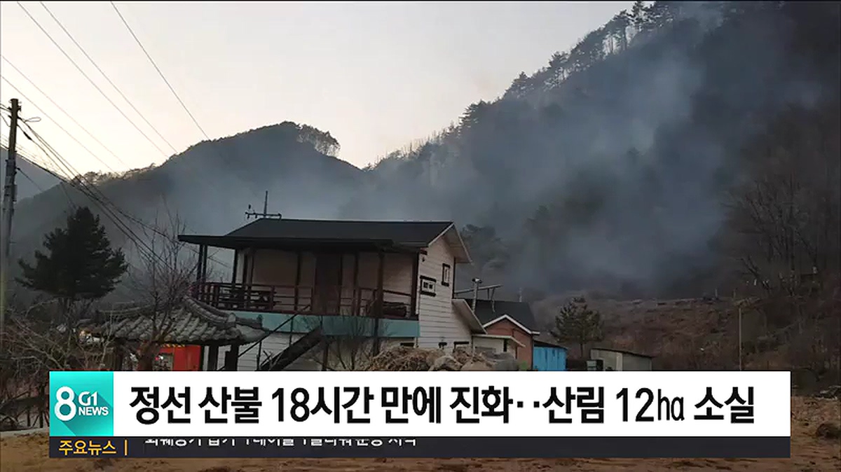 정선 산불 18시간 만에 진화..산림 12ha 소실