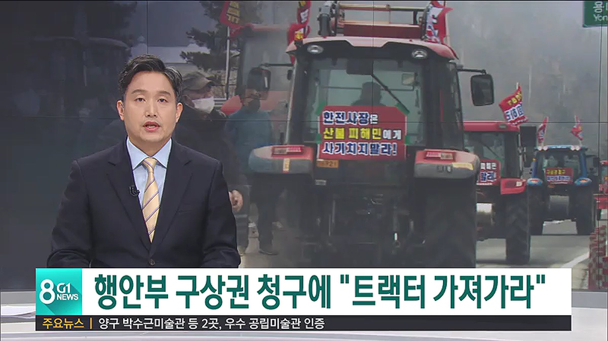 "이재민들은 정부의 구상권 청구에 항의하기 위해 정부로부터 받은 이 트랙터를 강원도청에 반납하기로 했습니다."