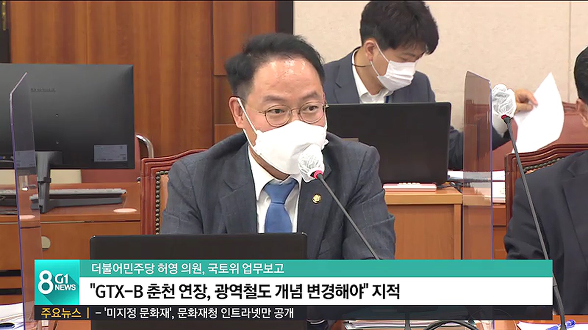 더불어민주당 허영 의원은 오늘, 국토부의 국회 국토위 업무보고에서 수도권 광역급행철도인 GTX-B 노선의 춘천 연장을 위한 광역철도 개념의 변경 필요성을 지적했습니다.