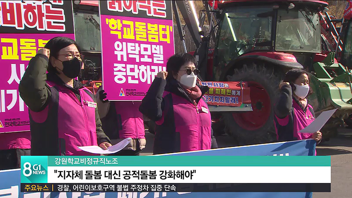 강원학교비정규직노조는 기자회견을 열고, 정부가 추진하는 지자체돌봄 대신 공적돌봄이 강화돼야 한다고 주장했습니다.
