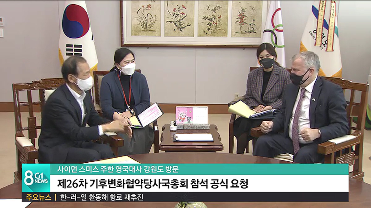 사이먼 스미스 대사는 최문순 도지사를 만나 오는 11월 영국 글래스고에서 열릴 예정인 '제26차 기후변화협약당사국총회'에 강원도 차원의 참석을 공식 요청했습니다.