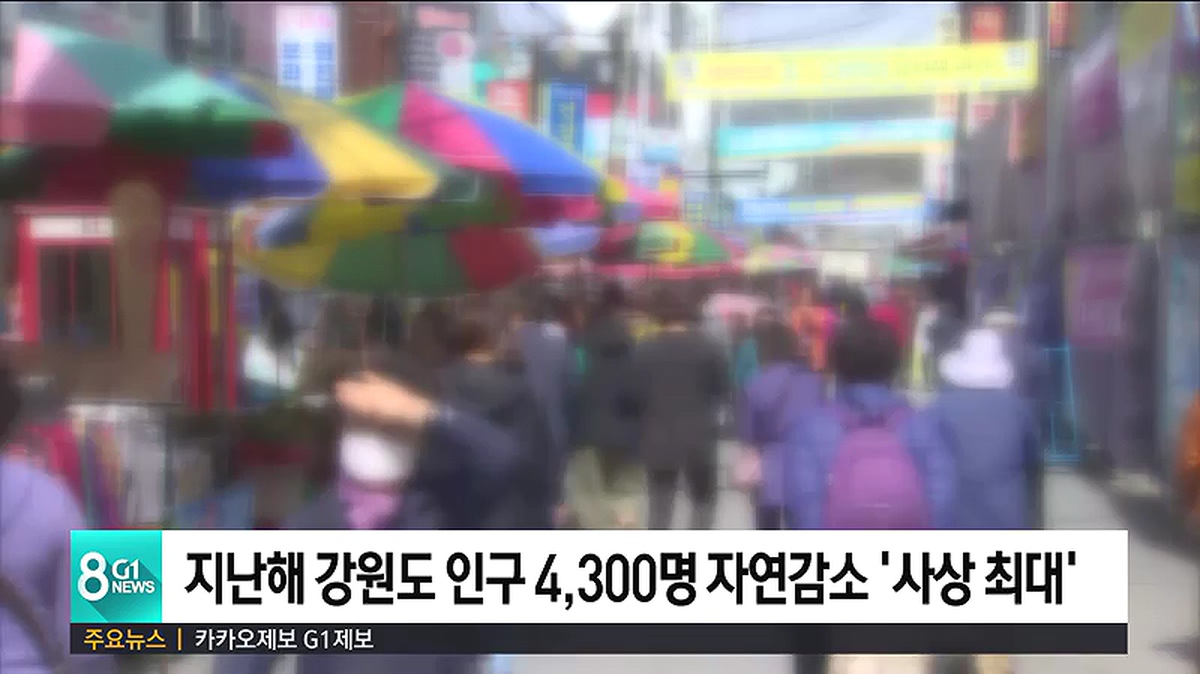 반면, 사망자 수는 만 2천2백 명으로 집계돼, 지난해 강원도 인구는 4천 3백 명이 자연감소한 것으로 나타났습니다.