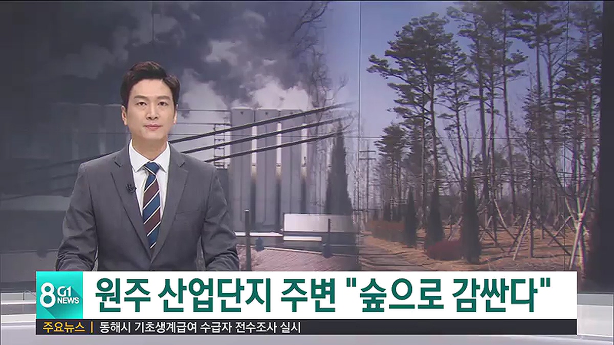 원주시가 지역에서 발생하는 미세먼지를 효과적으로 줄이기 위해, 산업단지 주변을 숲으로 감싸는 사업을 벌이고 있습니다.