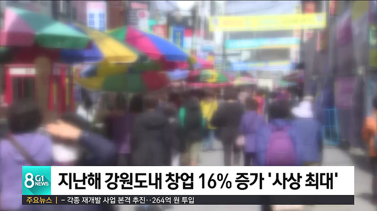 코로나19 국면에서 비대면 업종의 창업이 급증하면서, 지난해 강원도내 창업은 16% 증가해, 사상 최대치를 기록했습니다.