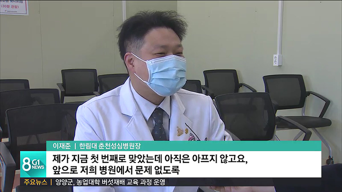 "제가 지금 첫 번째로 맞았는데 아직은 아프지 않고요, 앞으로 저희 병원에서 문제 없도록 잘 책임지고 도와주겠습니다. (시민들도)걱정 마시고 맞으시길 부탁드리겠습니다."