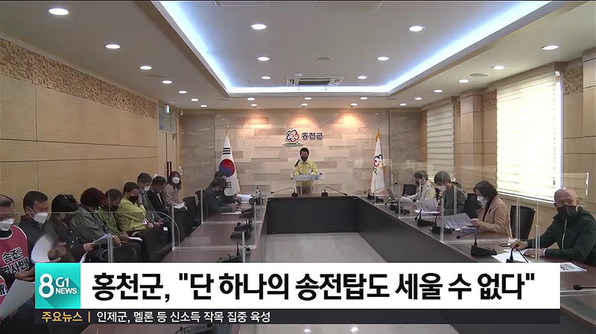 홍천군은 '단 하나의 송전탑도 세울 수 없다'는 방침을 세우고, 범군민대책위원회를 구성해 강력 대응해 나갈 계획이라고 밝혔습니다.