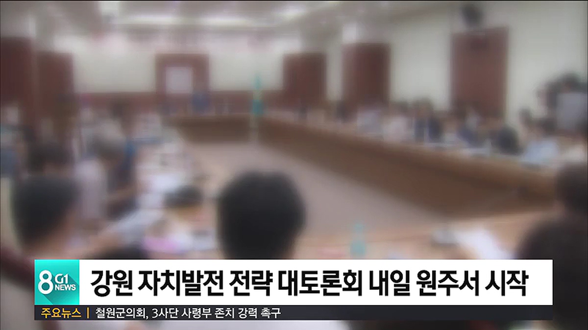 G1 방송 창사 20주년을 맞아 도내 18개 시.군의 현안을 점검하고 발전 방안을 논의하는 '강원 자치발전 전략 대토론회'가 내일 원주를 시작으로 오는 10월까지 이어집니다.