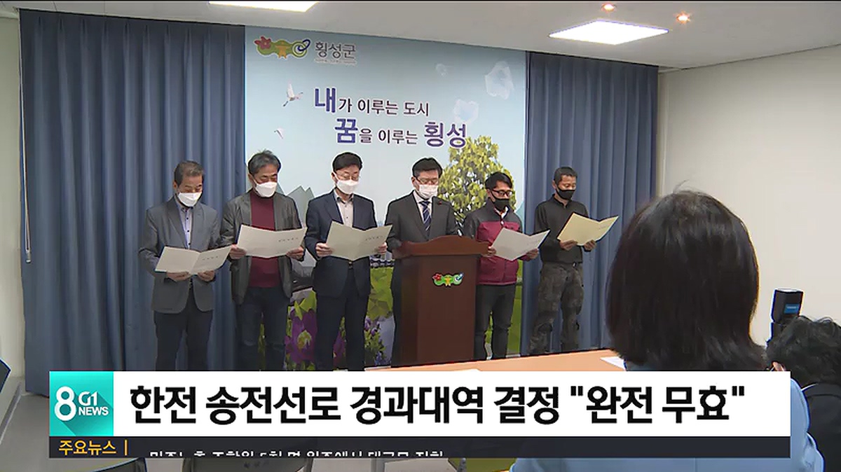횡성군과 횡성군의회 등은 오늘 긴급 브리핑을 열고 "송전선로는 지역 주민의 생존권과 재산권을 침해하고 환경 파괴를 야기하는 중차대한 사안임에도 한전과 일부 자치단체가 경과대역을 결정했다"고 주장했습니다.