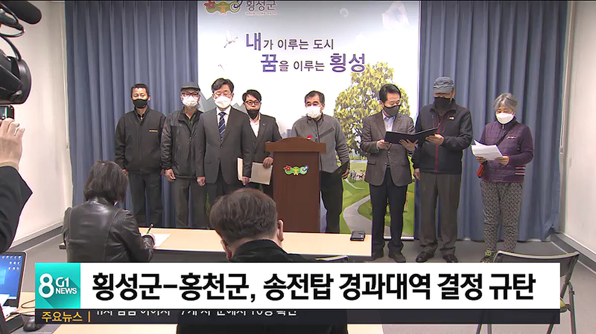 횡성군과 홍천군, 횡성송전탑반대대책위원회와 홍천송전탑반대대책위원회는 오늘 횡성군청에서 한전을 규탄하는 공동 성명을 발표했습니다.