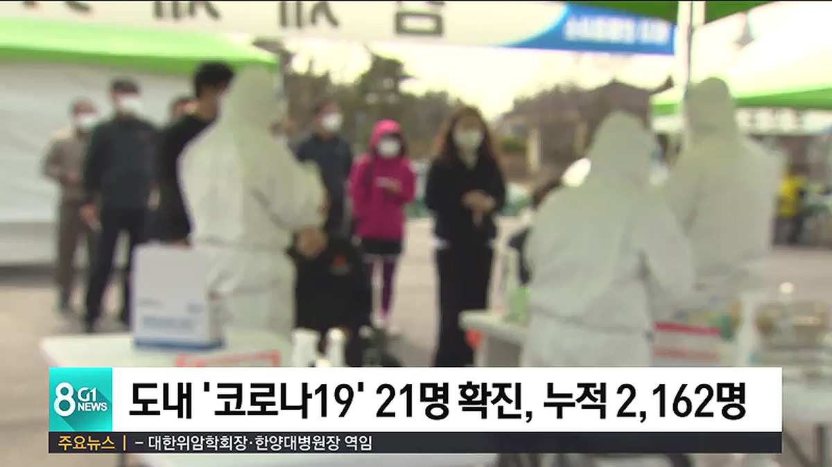 도내 '코로나19' 21명 확진, 누적 2,162명