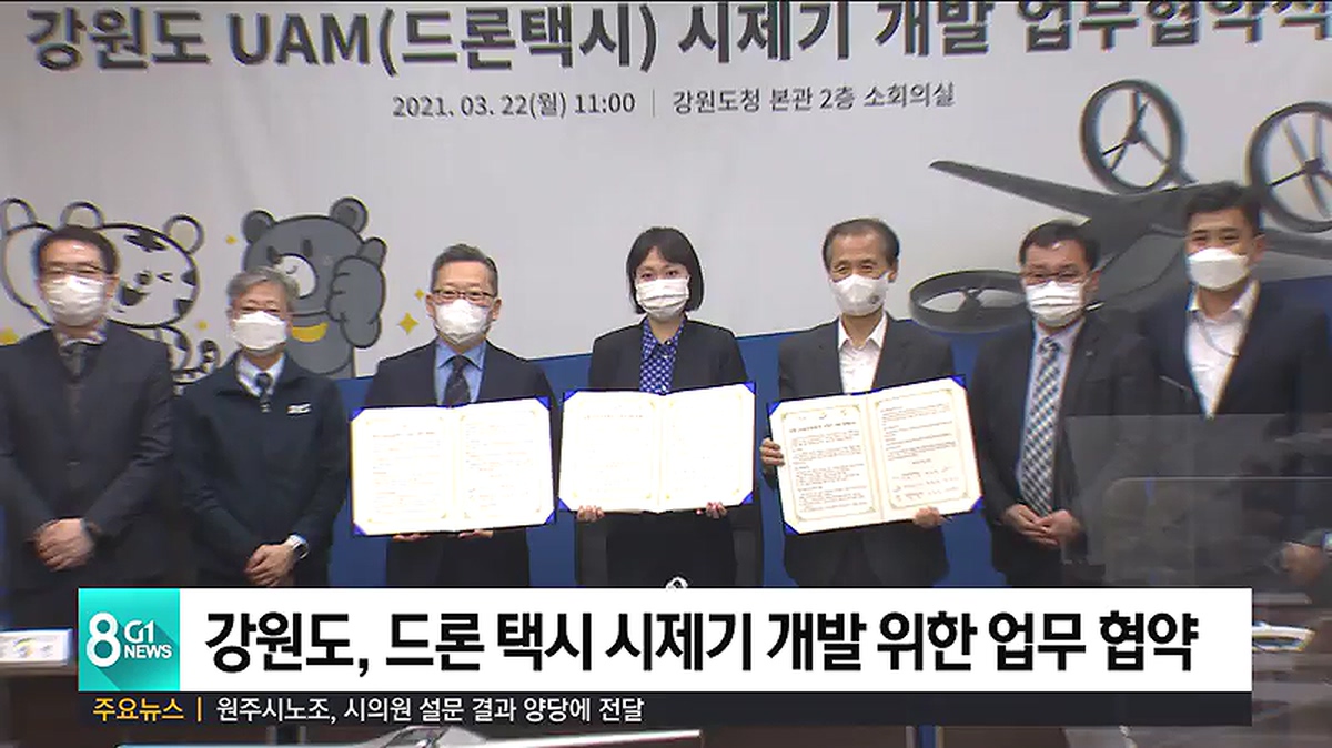 강원도와 강원테크노파크, 주식회사 디스이즈엔지니어링은 오늘(22일) 업무협약을 하고, 시제기 개발과 이를 위한 기본설계 작업에 협력하기로 했습니다.