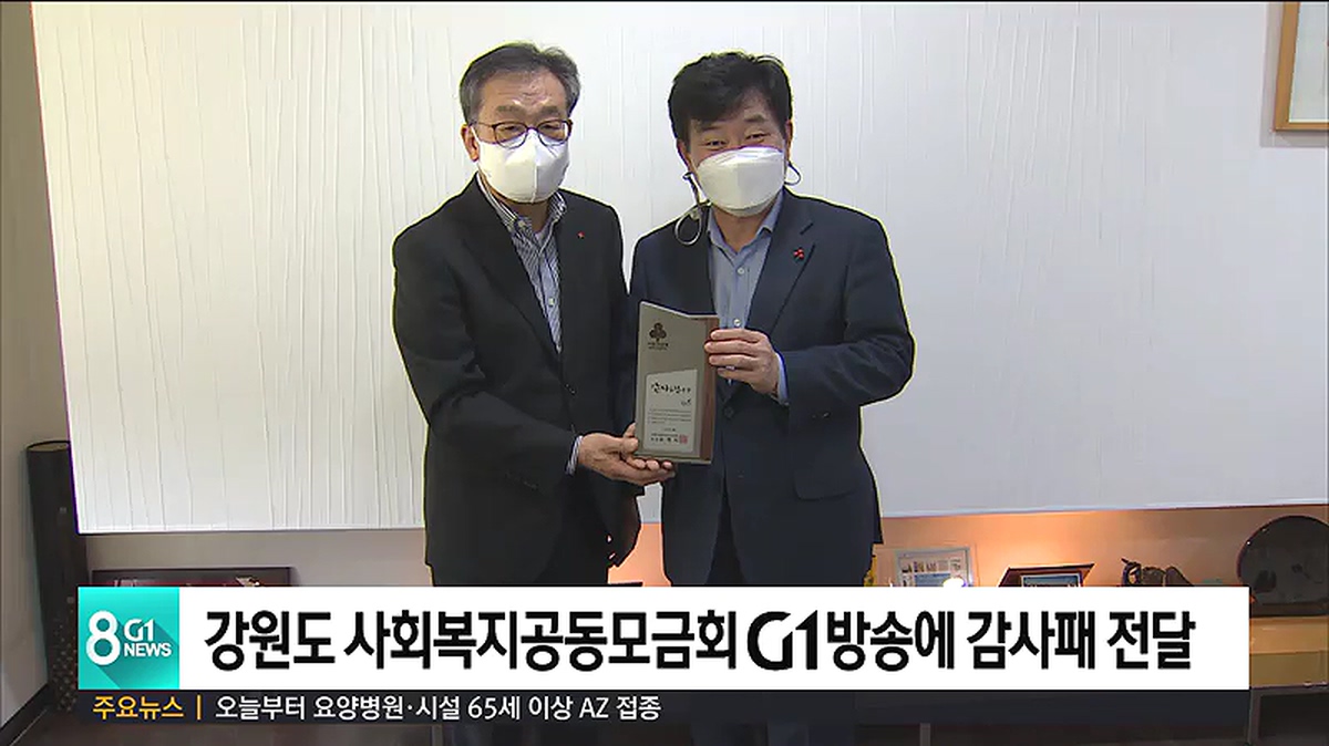 강원도 사회복지공동모금회는 오늘 G1방송을 방문하고, 성금 모금과 관련해 감사패를 전달했습니다.
