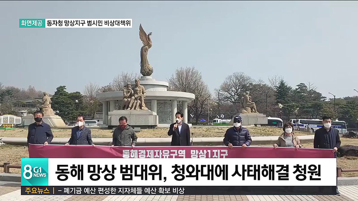 동해안권 경제자유구역청 망상지구 범시민 비상대책위원회가 오늘 청와대를 찾아 동해경제자유구역 망상1지구 사태해결을 촉구하는 청원문을 전달했습니다.
