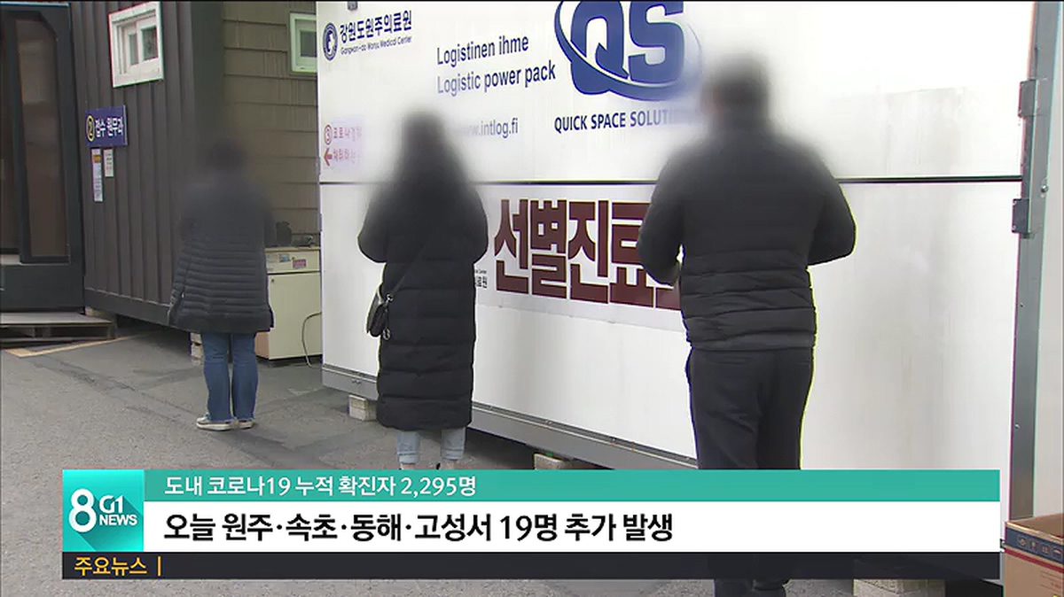 오늘(27일) 도내에서는 원주와 속초, 동해, 고성에서 코로나19 확진자 19명이 추가로 발생해, 누적 확진자는 2천 295명이 됐습니다.