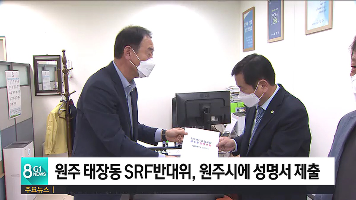 원주시 태장동에 재추진하는 고형폐기물연료 SRF생산공장 설립 계획과 관련해 태장동 주민 비상대책위원회가 오늘 반대 성명서를 원주시청에 전달했습니다.