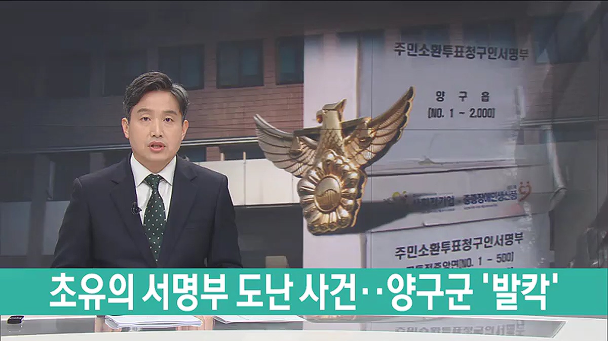 양구군은 주민 소환은 민주주의에 따른 주민의 권리라면서, 서명부 도난 사건에 대해 깊은 우려를 표했습니다.