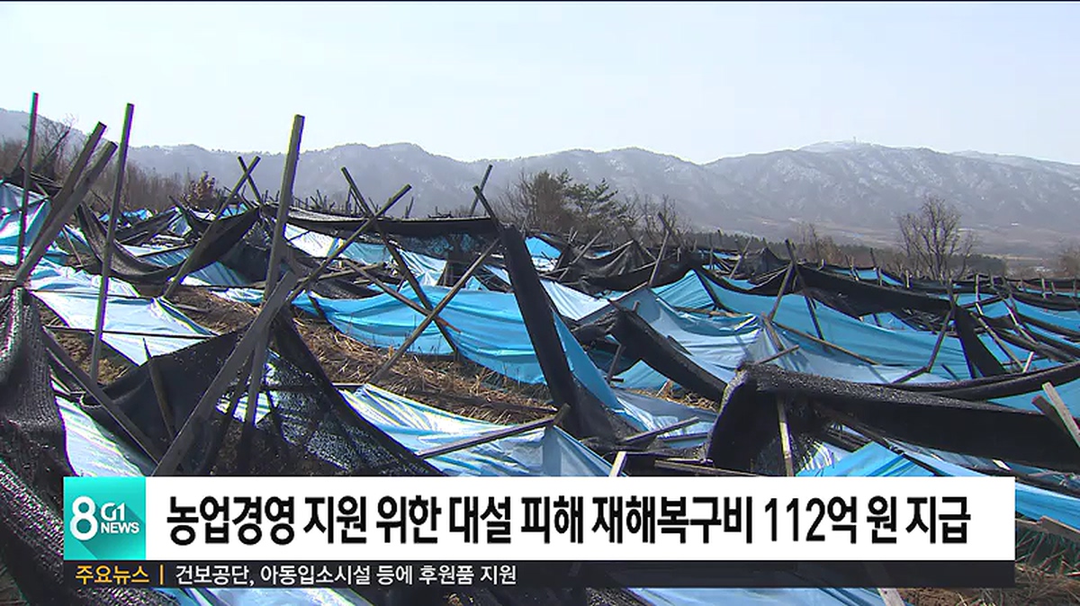 도, 농업경영 지원위한 대설피해 재해복구비 112억원